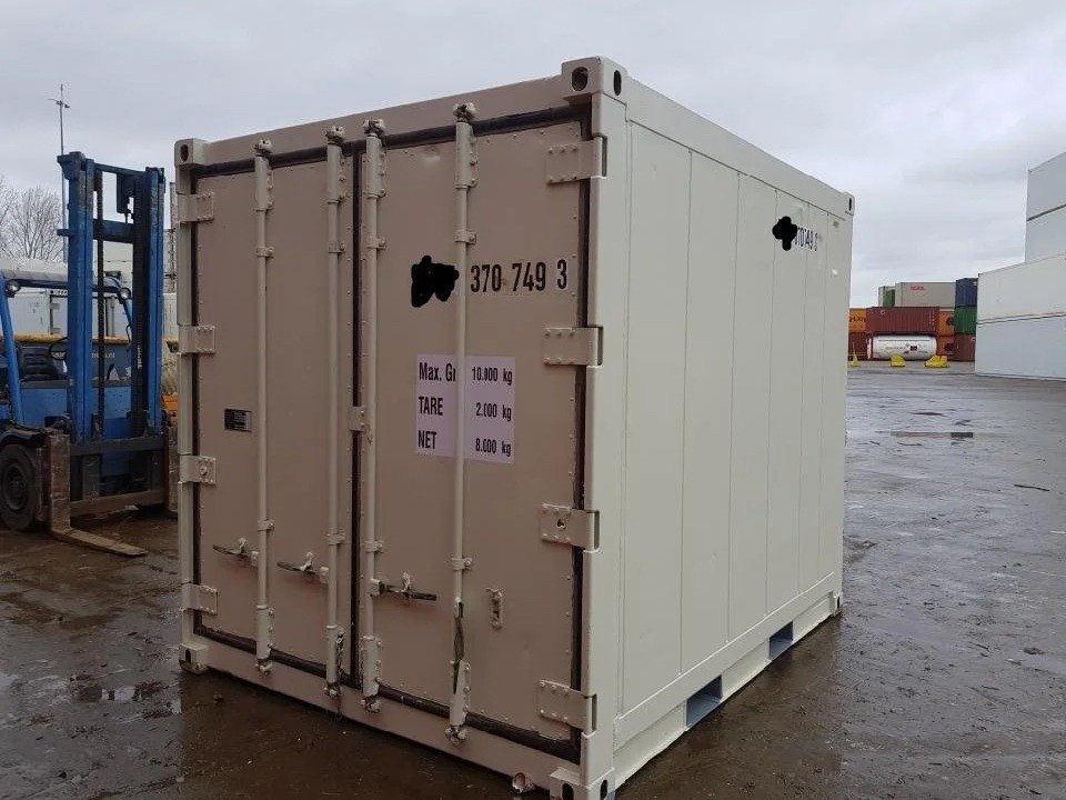 The small 10 ft i.e. 3 m Reefer Container is a perfect choice for you when you need a small thermally controlled space for storage. This small Reefer Container is very popular in events as well as in test use, as it offers a thermally regulated facility between -25°C and +25°C with one-degree accuracy. The interior surfaces of the container are made of stainless steel and aluminum so they are easy to keep clean. The container is easily moveable from one place to another with a forklift or crane and can also fit in places where the general 6 m model cannot. Containers come with a standard T-grid floor and lockable double doors. The container requires 5-pole 32A power supply to operate. 10′ Reefer Containers are also available as an HC (High Cube) model with a height of approx. + 30cm.All our used containers are maintained, tested and repainted. Our technicians have tested all the machinery and they have performed a PTI test, which the machinery must pass before being sold. We repaint all used containers before delivery to extend the life cycle of the container. The standard colors are white and light grey, but the container can be custom painted in your desired color. All of our containers are suitable for freight use and have a valid CSC plate. Please note that the minimum size for ocean transport is 20 feet (6 m), so you cannot send this container as an ocean freight like a normal container. The container is only suitable for ocean freight when attached to another 10 foot container or as mixed cargo.We always have about 10-20 containers of different models available and you can always get the price of the day by asking for an offer from our sales team.