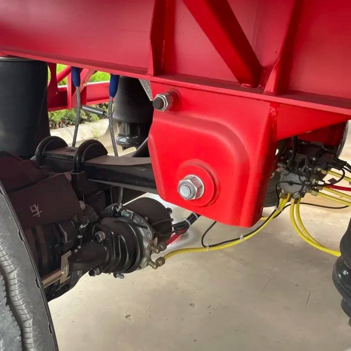 The 3-axle configuration allows even weight distribution and improved hauling stability, especially when carrying long or heavy cargo. This setup reduces stress on each axle and enhances trailer performance across highways, construction routes, and uneven roads. The heavy-duty suspension and tires support balanced towing while maintaining smooth motion under full load.